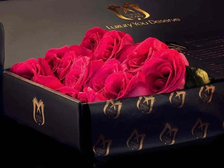 Exquisite Boxed Roses – Simple yet Opulent Our Signature black and gold UniqueRoses box holds 24 beautiful luxury Ecuadorian roses, delicately arranged and wrapped in our exclusive tissue paper. These are the perfect gift for any occasion, and offer an unparalleled gift receiving experience.